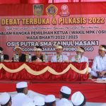 Genggong – Setelah sepekan lalu di gelar kegiatan pilkasis putri, OSIS Putra SMA Zainul Hasan 1 juga menggelar debat terbuka dan pemilihan ketua osis putra masa khidmad 2022/2023 pada Ahad (28/8). Acara yang digelar di halaman SMA Zainul Hasan 1 Genggong dihadiri oleh seluruh santri putra,guru, staf dan karyawan SMA Zainul Hasan 1 Genggong . Pilkasis merupakan program kegiatan terakhir dari pengurus OSIS putera masa khidmad 2021/2022. Semua santri mengikuti dengan antusias acara yang mengusung tema bertajuk “siap memimpin dan dipimpin menuju pemimpin yang berintegritas” ini.